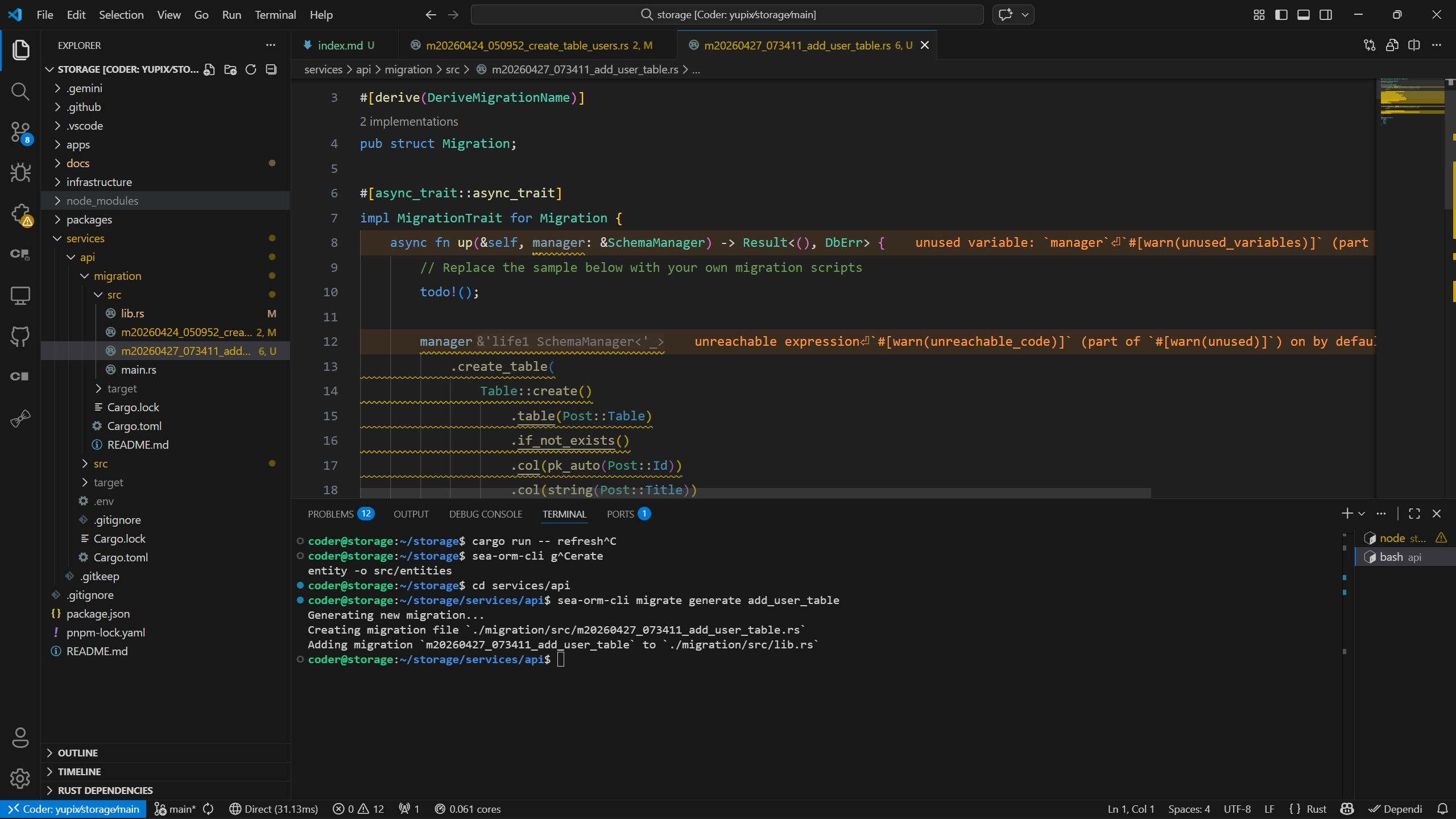 書ければ以下のコマンドを実行しデータベースに変更内容を適応する。